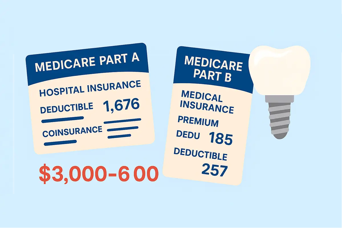 Although Medicare Parts A and B have defined premiums and deductibles for medical services, they do not include dental implants, routine dental care, or most other dental services. That means while Medicare helps with hospital and outpatient costs once deductibles are met, dental implant expenses, averaging $3,000 to $6,000 per tooth, are almost entirely out-of-pocket.